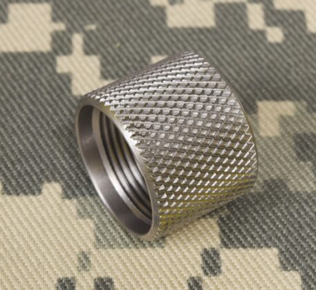 11/16 x 24 tpi Barrel Thread protector. It is machined from stainless steel to very high quality standards on CNC lathes in my shop. It is counter bored on both ends to accommodate barrels that are not undercut at the shoulder.